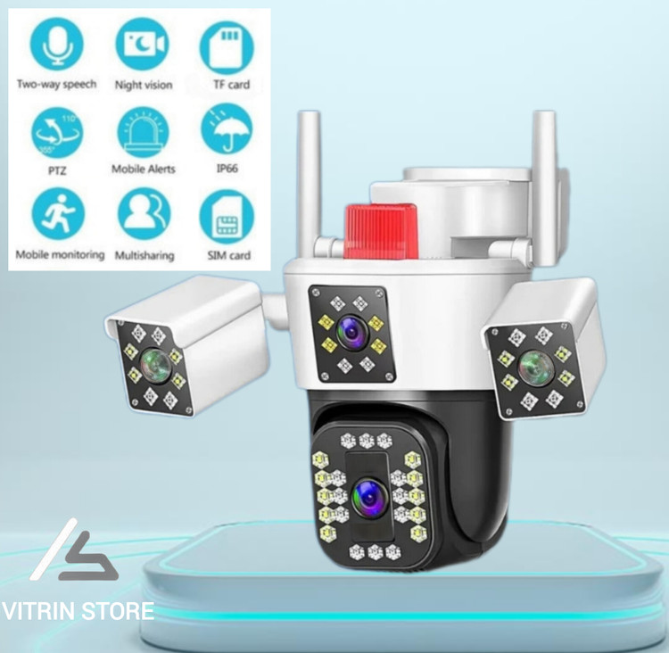 3. زاویه دید گسترده: با دارا بودن چهار لنز بازدارنده (دو لنز واقعی ودو لنز ماکت LED دار) و ارائه سه تصویر ، این دوربین قادر به پوشش زوایای وسیعتری است که به بهبود نظارت بر محیط کمک میکند.
