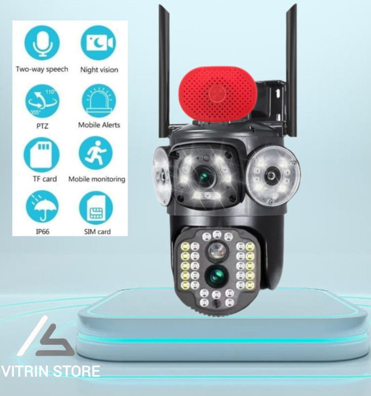 دوربین مینی اسپیددام سیمکارتی 3 لنز 12 مگاپیکسل پرژکتوری بلندگو بزرگ